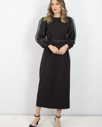 RUMELLA 9098 ELBİSE KOLLAR ŞİFON DETAYLI KEMERLİ