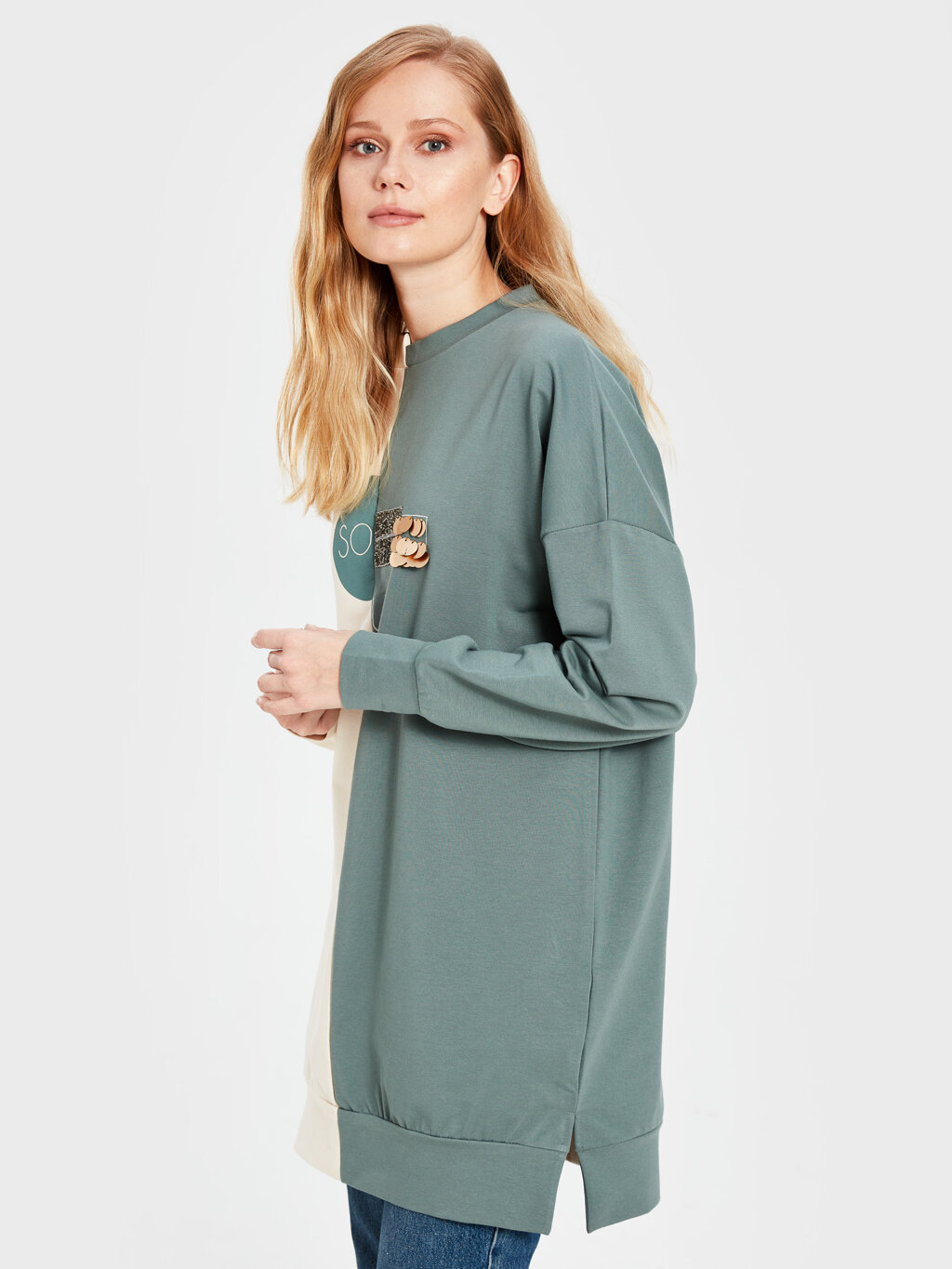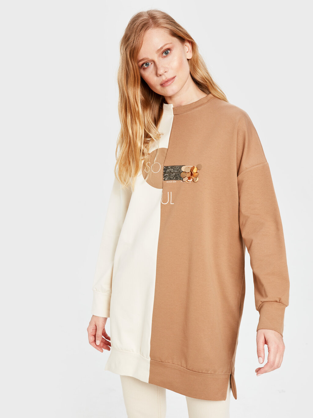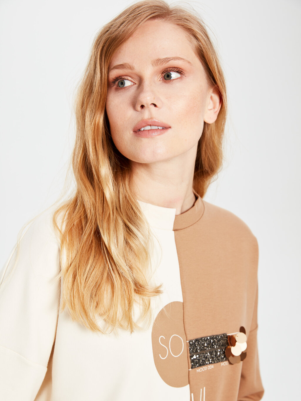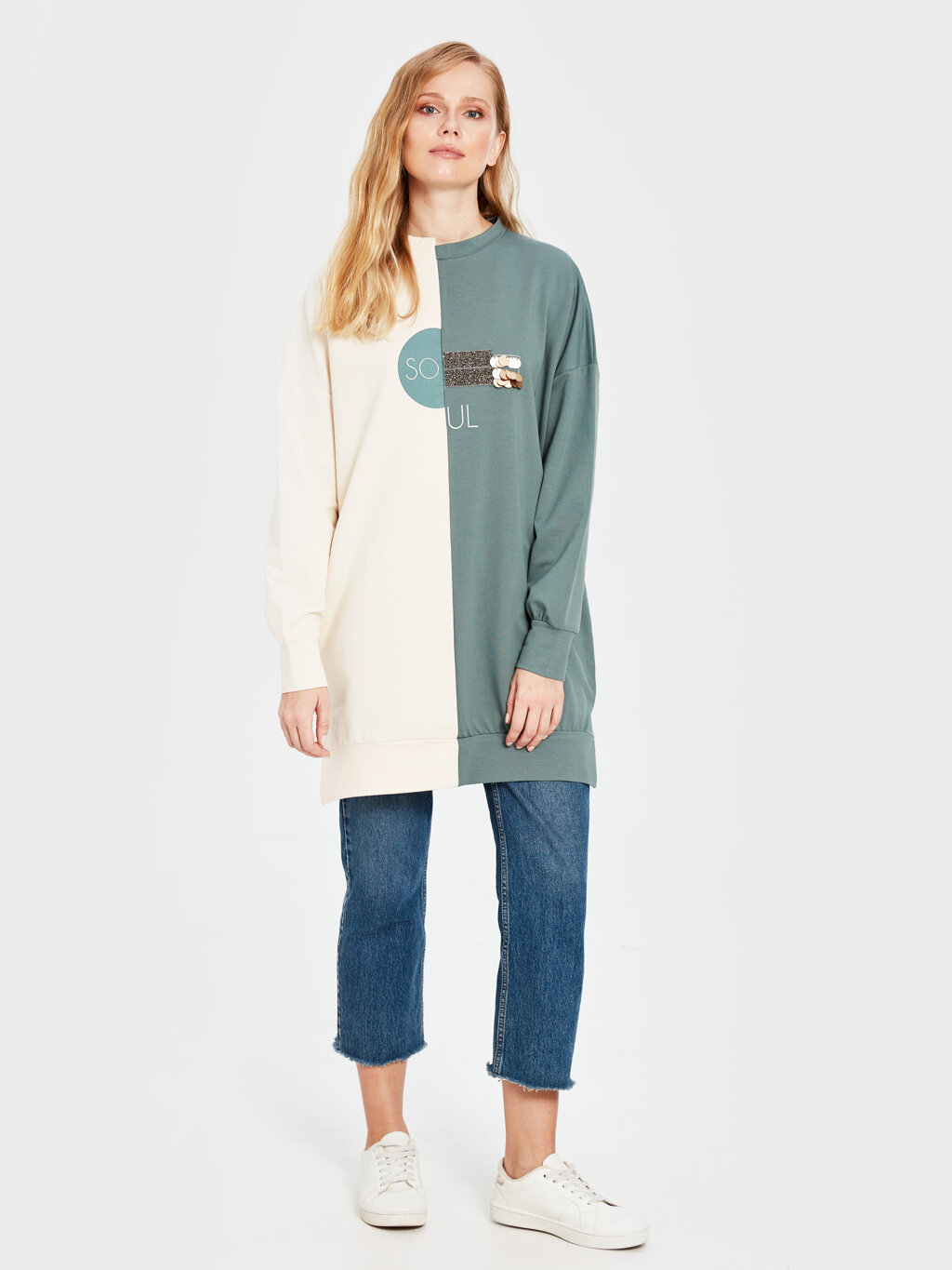 Loreen Renk Bloklu Pul İşlemeli Sweatshirt